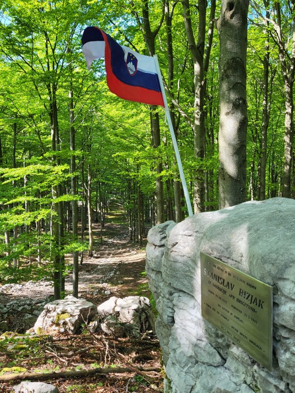 24. maja 2023, ob 80-letnici zločina Pr Brgiti, je bilo postavljeno spominsko obeležje, kjer so našli mrtvega Slavkota Brigtnega, ki si je sodil sam, ko je videl, kaj so italijanski vojaki naredili z njegovo družino. Zločin se je zgodil v noči s 24. na 25. februar, leta 1943. Slavkota pa so mrtvega dobili 25. maja 1943. Pokopali pa so ga 31. maja, s posebnim potrdilom (dovoljenjem) iz Gorice, ker ga prej ni pustila pokopati italijanska fašistična oblast. To tragedijo sta obširneje literarno obdelala pisatelj Danilo Lokar - v noveli 'Za frontami'; in dramatik Tone Partljič v dramskem besedilu 'Rdeče in sinje med drevjem'; ljudsko in drugo izročilo o strašnem dogodku je zbral Franc Černigoj in ga objavil v več številkah časnika 'Gora' ter v knjigi 'Znamenje na Gori'.