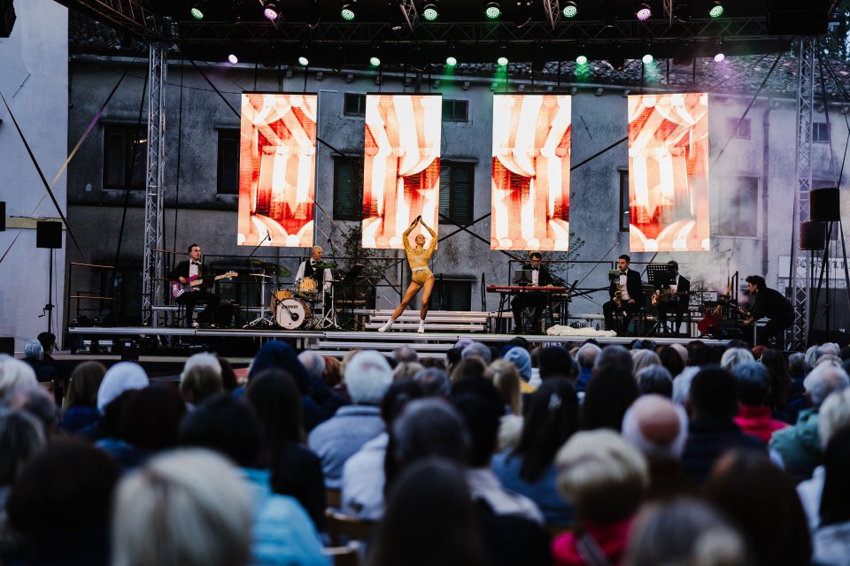 Kabaretna predstava Ona navdušila občinstvo na Lavričevem trgu