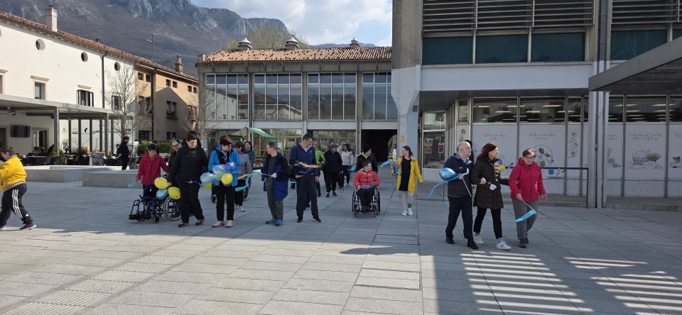 Tudi uporabniki in zaposleni iz ajdovske enote Varstveno-delovnega centra Ajdovščina – Vipava so se podali na sprehod po mestu. Njihove dlani so krasile nogavičke, na katere so prilepili oči, nos in usta. Lea Kranjc je povedala, da jih nosijo zato, ker praznujejo poseben praznik: »Jutri imamo praznik in doma bomo imeli prav slavnostno kosilo. Danes ljudem delimo nogavičke in listke z lepimi mislimi. Je lepo, ker je lep dan, gremo malo na sprehod po sončku. Lepo je, radi se imamo,« je dejala Lea.