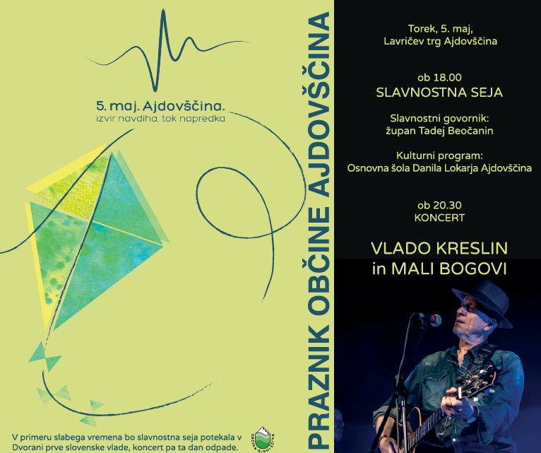 Praznično dogajanje se bo nadaljevalo tudi v večernih urah. Ob 20.30 bo sledil koncert Vlada Kreslina s skupino Mali bogovi, ki bo poskrbel za glasbeni vrhunec prazničnega dne.