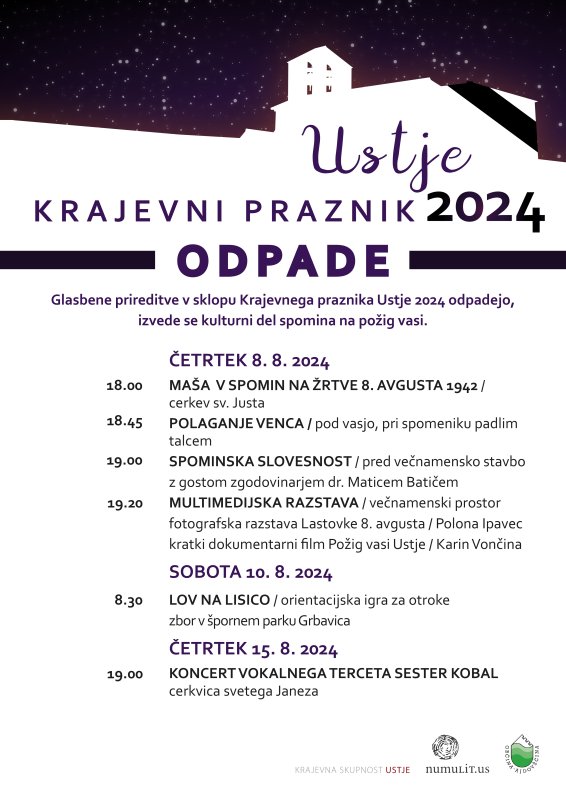 Dogodek: Krajevni praznik - Ustje - PRESTAVLJENO na septemberDatum: 08.08.2024 - 15.08.2024