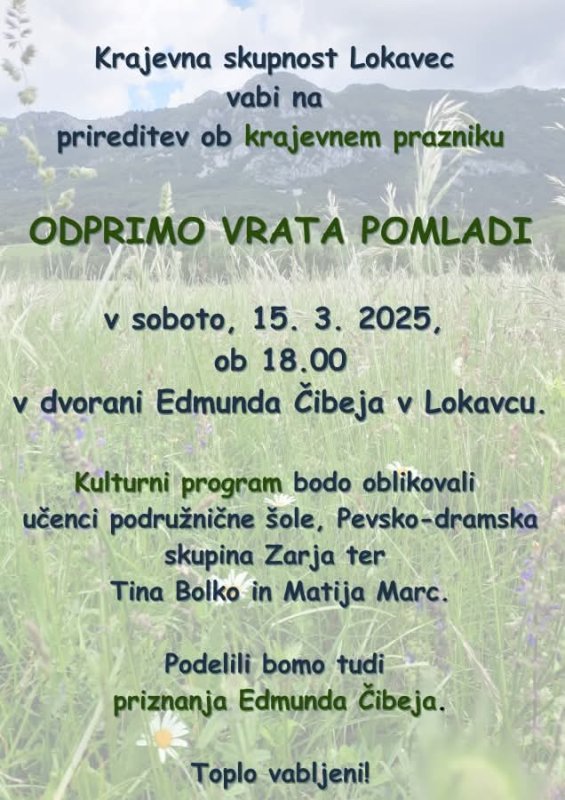 Dogodek: Krajevni praznik v Lokavcu: Odprimo vrata pomladiDatum: 15.03.2025