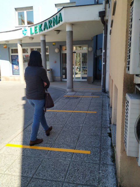 Vse občanke in občane naprošamo, da se striktno držijo navodil. Upoštevajte socialno distanco in omejevanje števila oseb pri vstopanju v trgovino. Upoštevajte pravila čakanja pred trgovinami. Danes so bile na vseh trgovskih objektih in lekarnah ter mestih, kjer prihaja do zbiranja več ljudi zarisane črte, ki označujejo predvidena mesta za čakanje. Ena črta je namenjena eni osebi – če črt zmanjka, se držite distance.