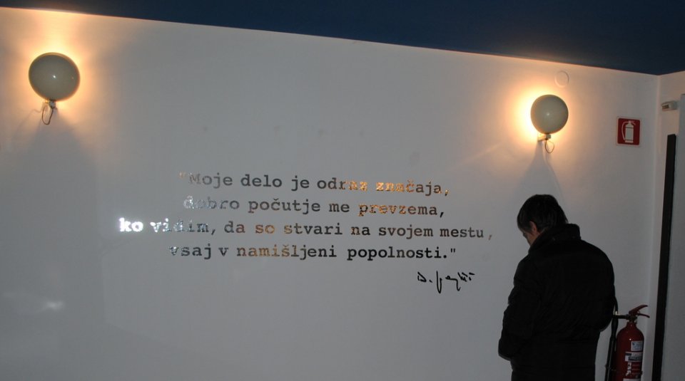 Napis na steni Pilonove galerije, pred vhodom v razstavne prostore: "Moje delo je odraz značaja, dobro počutje me prevzema, ko vidim, da so stvarni na svojem mestu, vsaj v namišljeni popolnosti." Danilo Jejčič