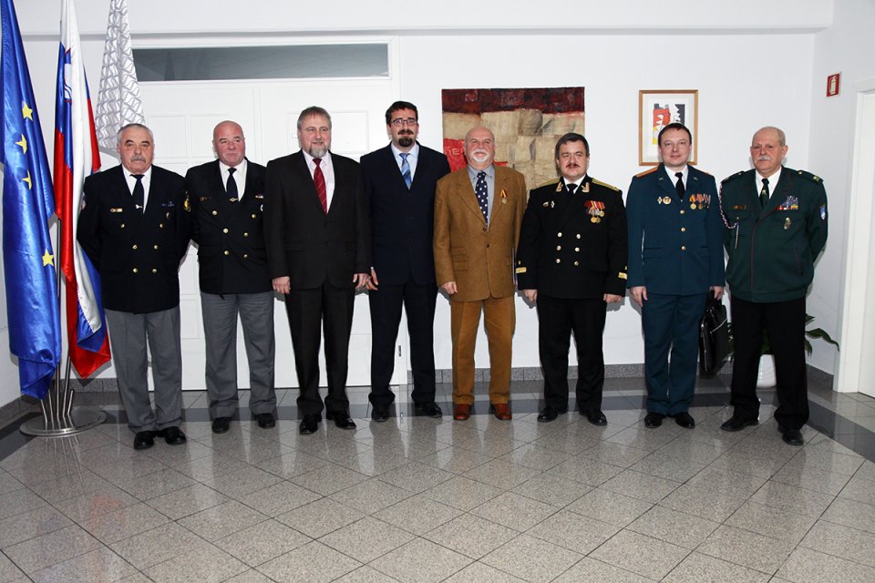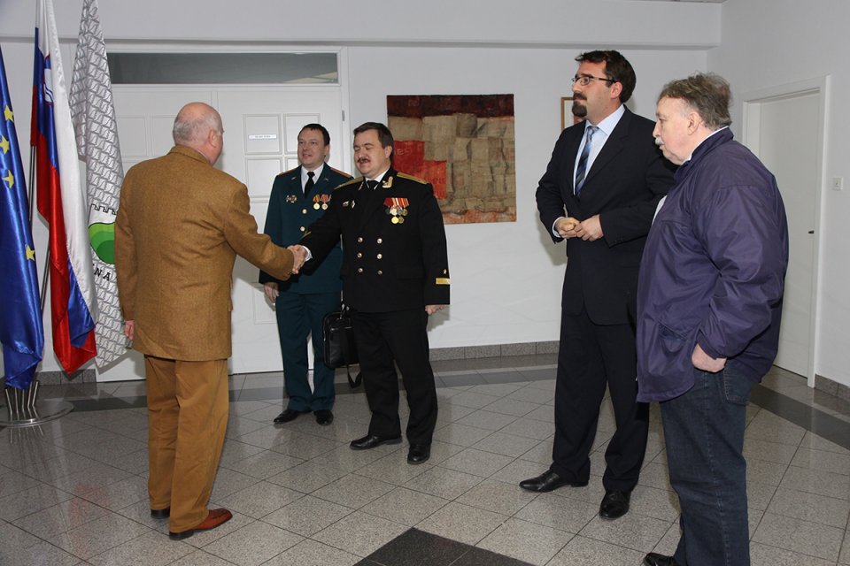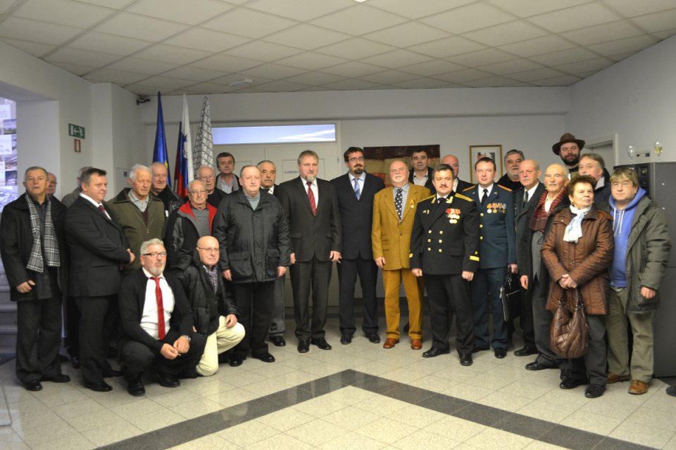 Predstavnika Društva Sever, mag. Miloš Bizjak, županTadej Beočanin, Božo Novak, vojaški ataše Mihail Glagazin in njegov pomočnik, predsednik Veteranov vojne za Slovenijo Ajdovščina-Vipava Ivo Marc; foto Roman Žonta