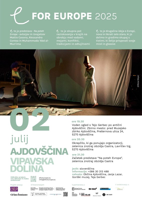 Drevi bo Ajdovščina ponovno del čudovite potujoče zgodbe Na poteh Evrope, multimedijske in večjezične predstave, ki ljudi povezuje v razmislek o mejah, migracijah in tem, kaj Evropa danes pomeni vsakemu od nas.