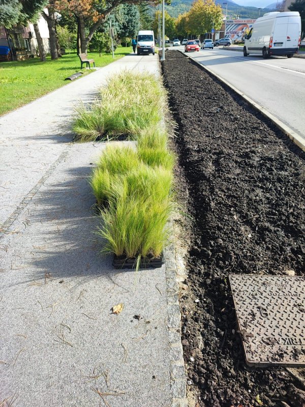 Mestne zelenice so zasajene. Cvetoče trajnice in okrasne trave se bodo prek zime dodobra ukoreninile, spomladi pa pognale v vsej svoji pestrosti in lepoti. Zasaditve vizualno sledijo že urejenim mestnim krožiščem. Cvetice med travami, ki s plapolanjem nedvoumno ponazarjajo našo značilno burjo, pa bodo privabljale čebele.