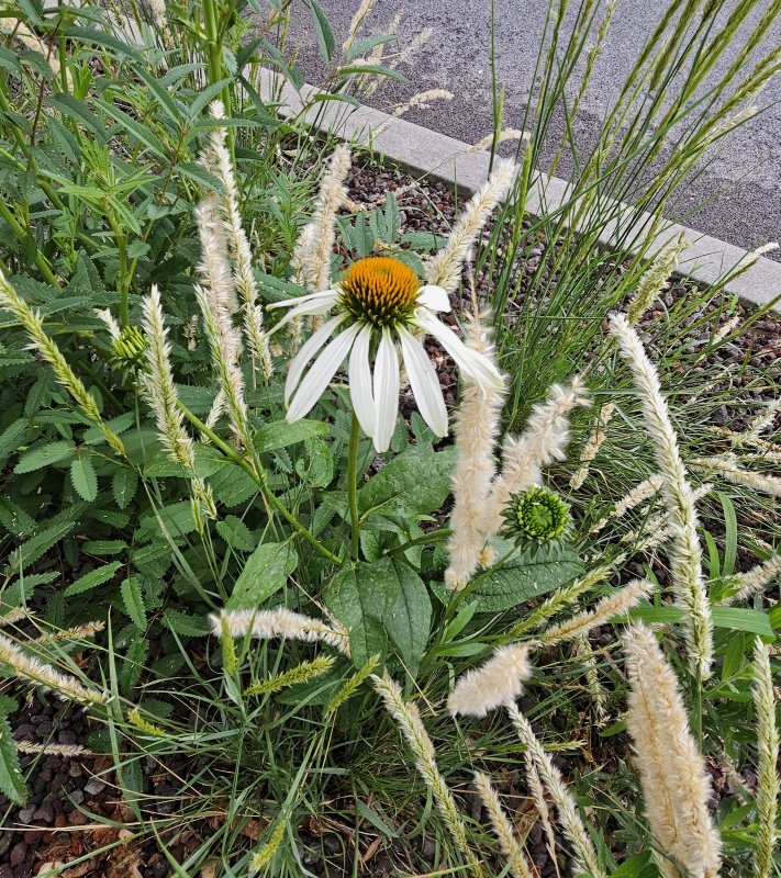 Te dni lahko na gredicah s trajnicami med migetajočimi travami občudujemo čudovite cvetove ameriškega slamnika. Počakati smo morali na začetek poletja, da so slamniki prvič zacveteli, sedaj pa nas razveseljujejo z značilnimi cvetovi z dolgimi vijoličnimi, rožnatimi ali belimi cvetnimi listi ter temno rjavim stožcem.