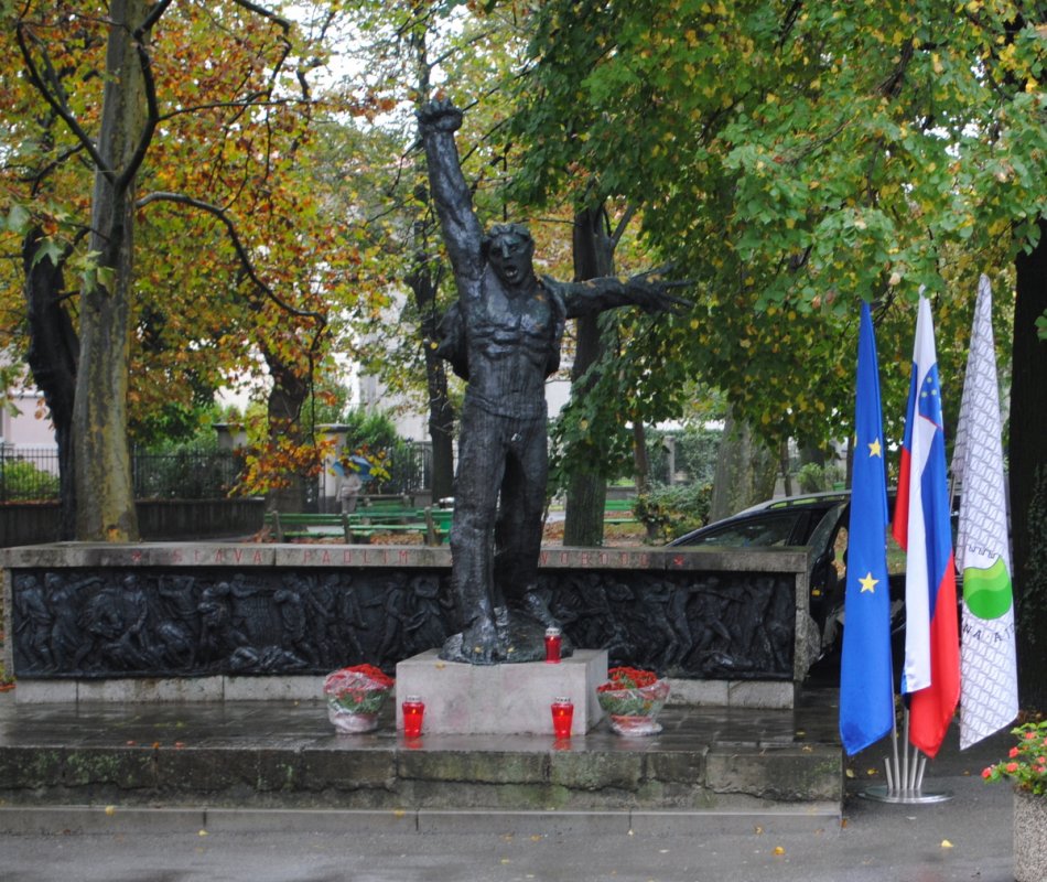 Na robu križišča Ceste 5. maja in Gregorčičeve ulice v Ajdovščini se ponosno vzpenja Spomenik upora primorskega ljudstva, delo kiparke Milene Stibilj Lah.