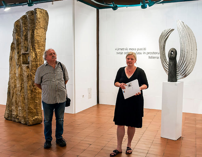 Milena Lah, kiparka, v Pilonovi galeriji v Ajdovščini