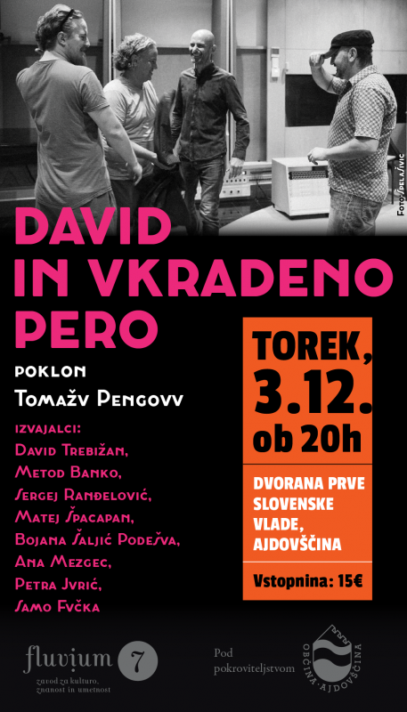Dvorana prve slovenske vlade bo gostila koncert – David in Vkradeno pero. Letos mineva namreč 5 let od smrti znamenitega slovenskega kantavtorja, glasbenika, skladatelja in pisca pesmi, Tomaža Pengova. Na državni ravni se je rodil projekt, ki se ob obletnici poklanja temu pomembnemu slovenskemu umetniku, in sicer v obliki priredbe izbranih enajstih pesmi omenjenega glasbenika, ki so bile v okviru RTV Slovenija premierno predstavljene 24. oktobra na koncertu na Ljubljanskem gradu, izdane pa bodo tudi na zgoščenki.