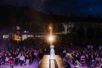 Kabaretna predstava Ona navdušila občinstvo na Lavričevem trgu