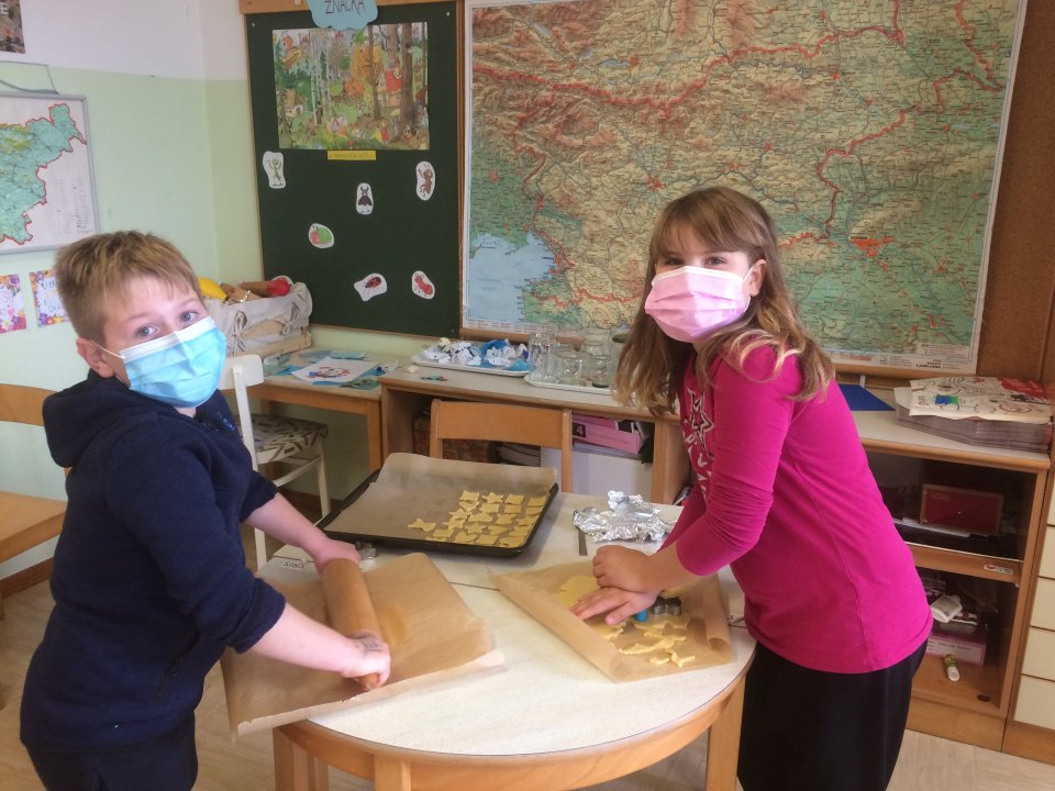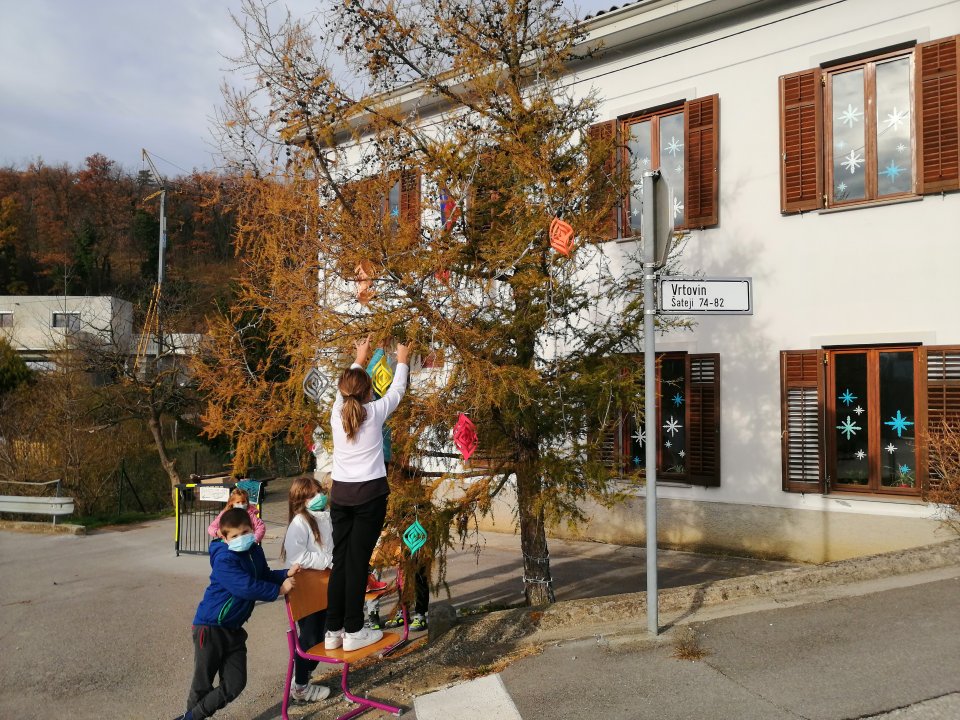 Na vrtovinski podružnici smo z učenci že pričarali praznično vzdušje. Okna nam lepšajo snežinke, macesen pred šolo pa krasijo raznobarvni okraski in navihani jelenčki.