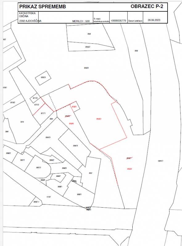 Nepremičnina je po veljavnem katastrskem stanju del parc. št. 953/1 in parc. št. 953/2, obe k.o. Ajdovščina in v fazi parcelacije pri Geodetski upravi Republike Slovenije.