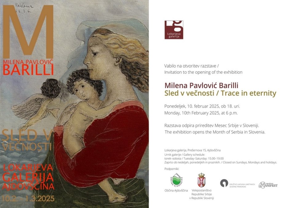 Od 10. februarja do 1. marca bo v Lokarjevi galeriji na ogled zelo zanimiva razstava italijansko - srbske umetnice Milene Pavlović Barilli z naslovom Sled v večnosti.