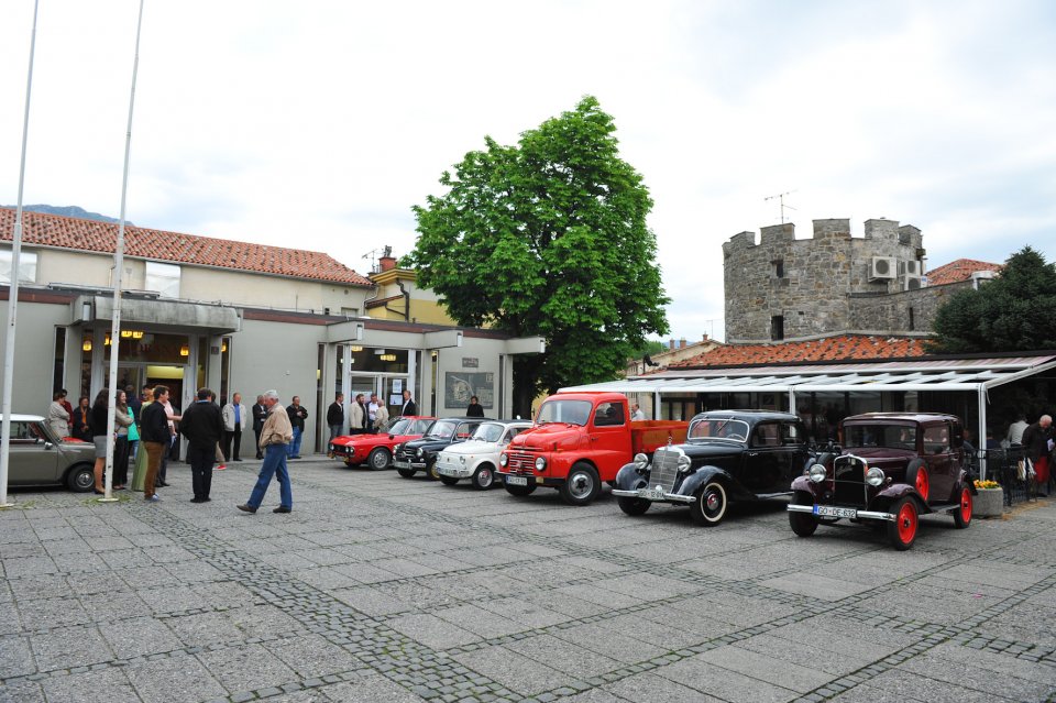 Društvo ljubiteljev starodobnih vozil Vipavska dolina je na trgu pred dvorano priredilo pravo malo razstavo starodobnikov. Foto Matjaž Slejko
