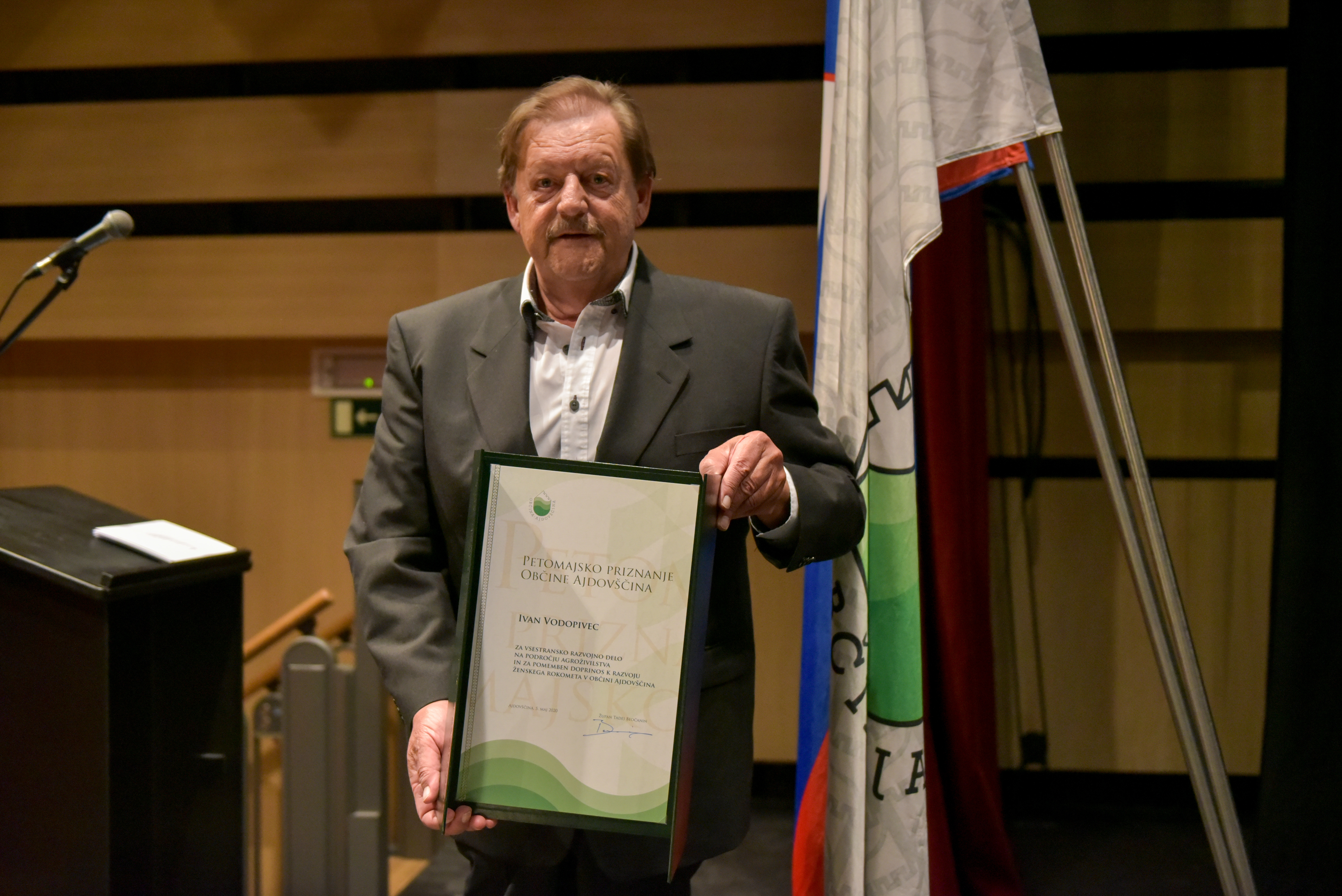 Ivan Vodopivec, prejemnik Petomajskega priznanja Občine Ajdovščina za vsestransko razvojno delo na področju agroživilstva in za pomemben doprinos k razvoju ženskega rokometa v občini Ajdovščina