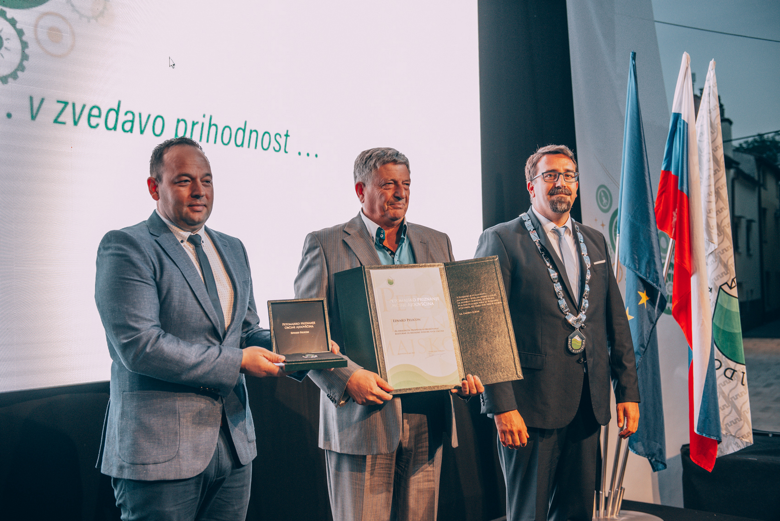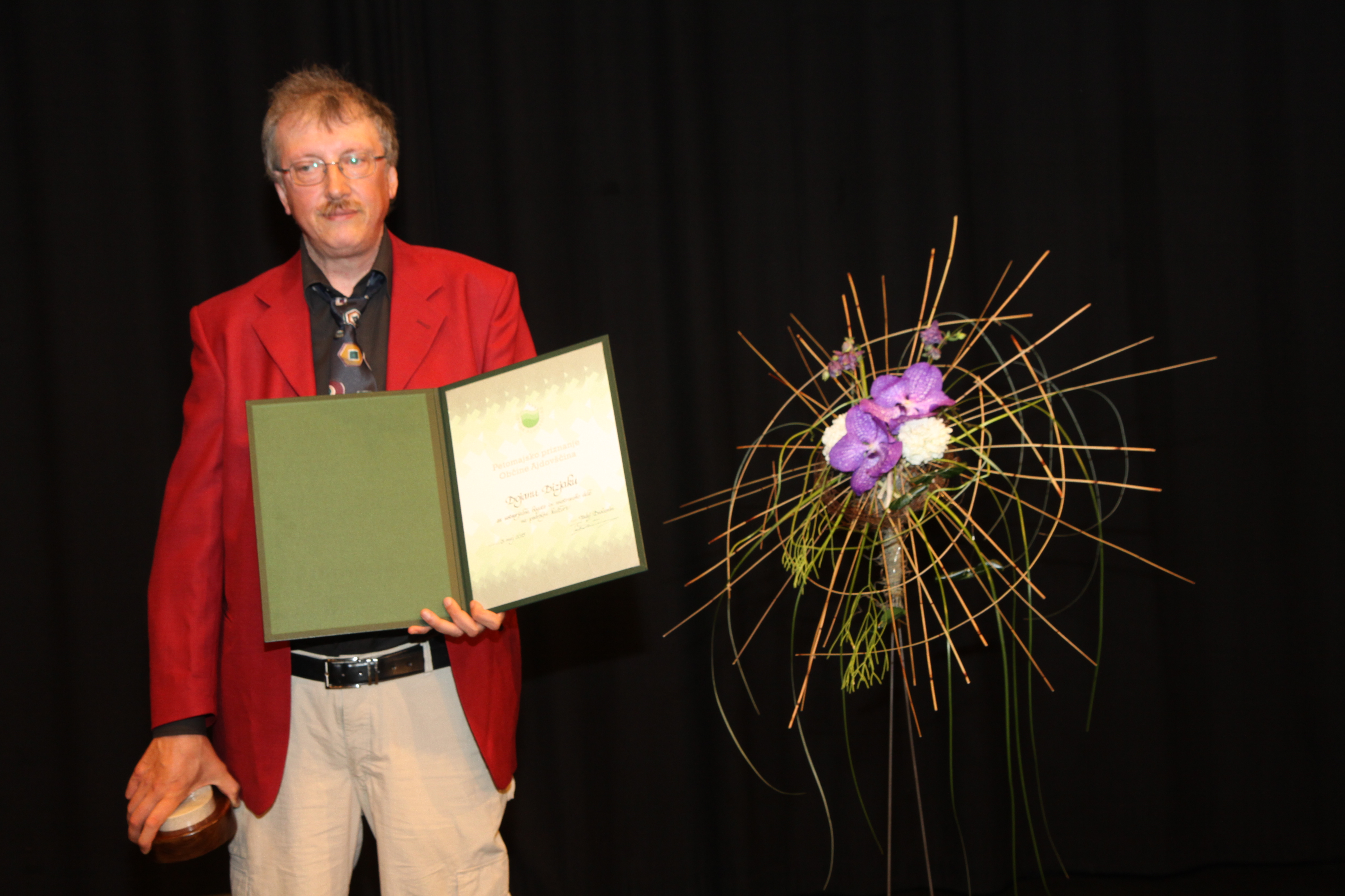 Edvard Pelicon, prejemnik Petomajskega priznanja Občine Ajdovščina za velik in dragocen prispevek k oblikovanju kulturne in medijske podobe naše občine.