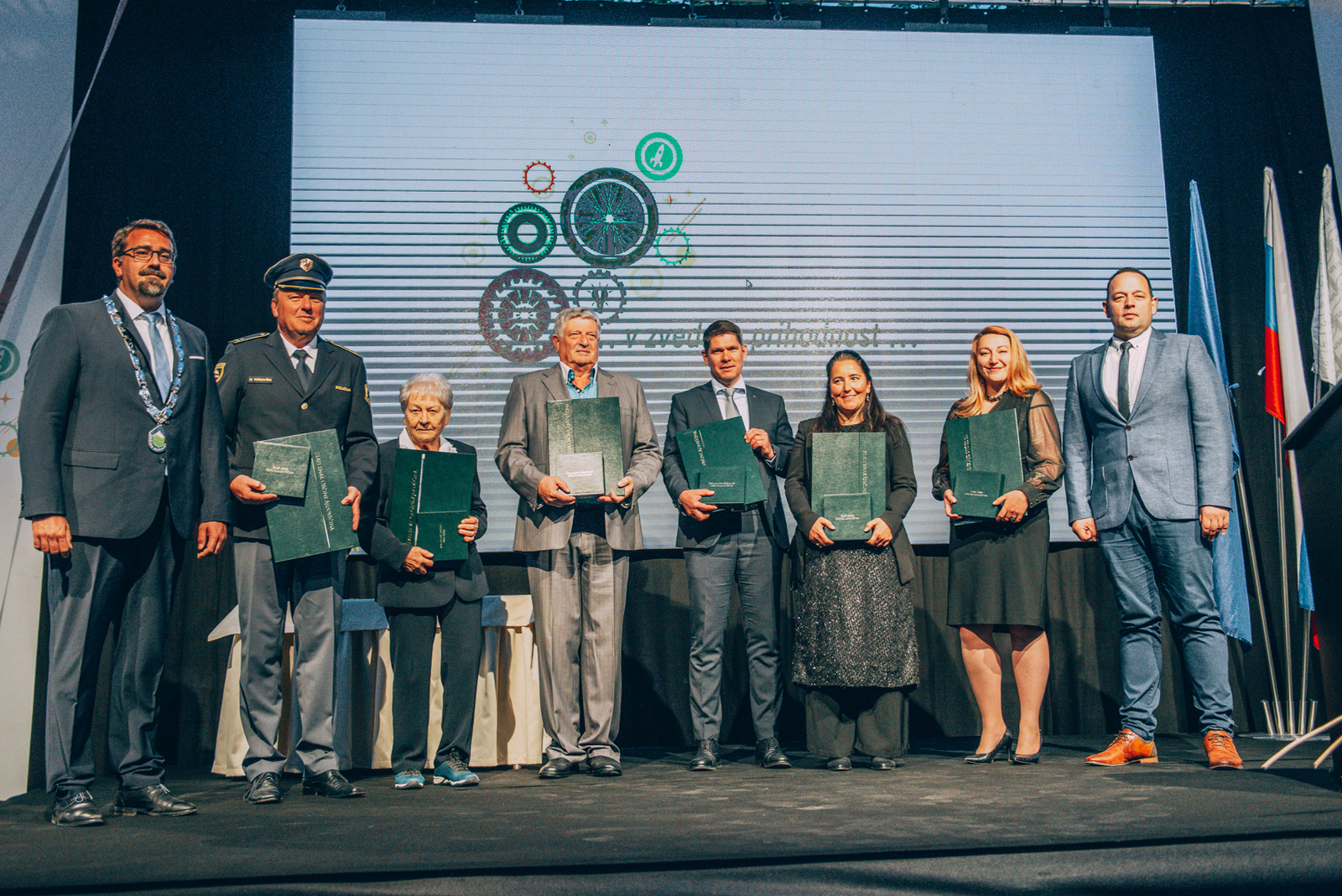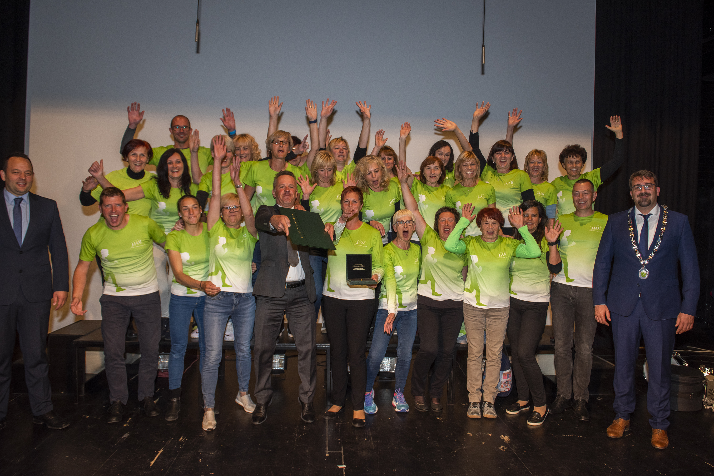 Skupinska fotografija nagrajencev z županom in predsednikom komisije