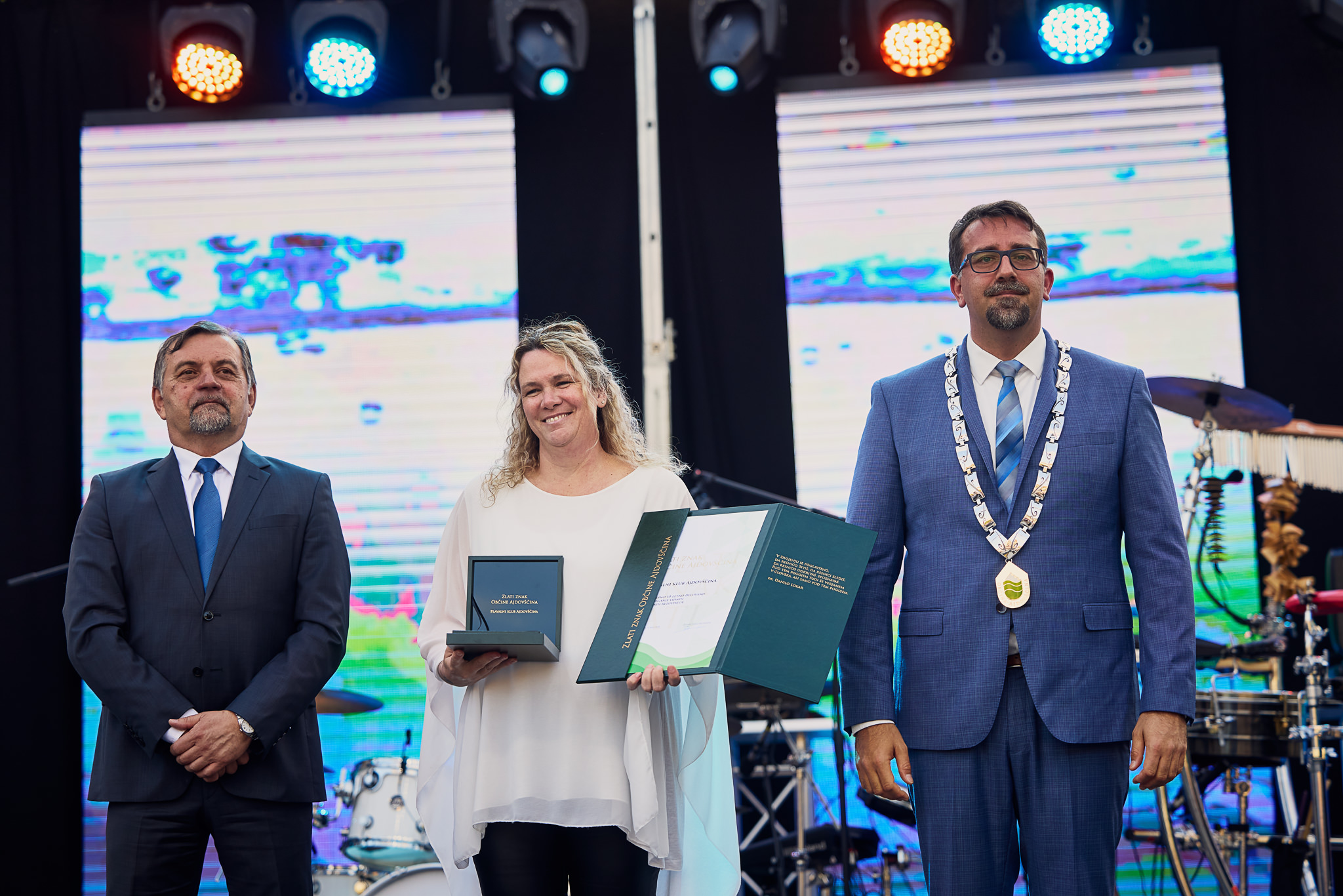 Marjuta Slamič, prejemnica Zlatega znaka Občine Ajdovščina za vrhunske uspehe na področju gledališke in filmske igre in krepitev kulturnega dogajanja.