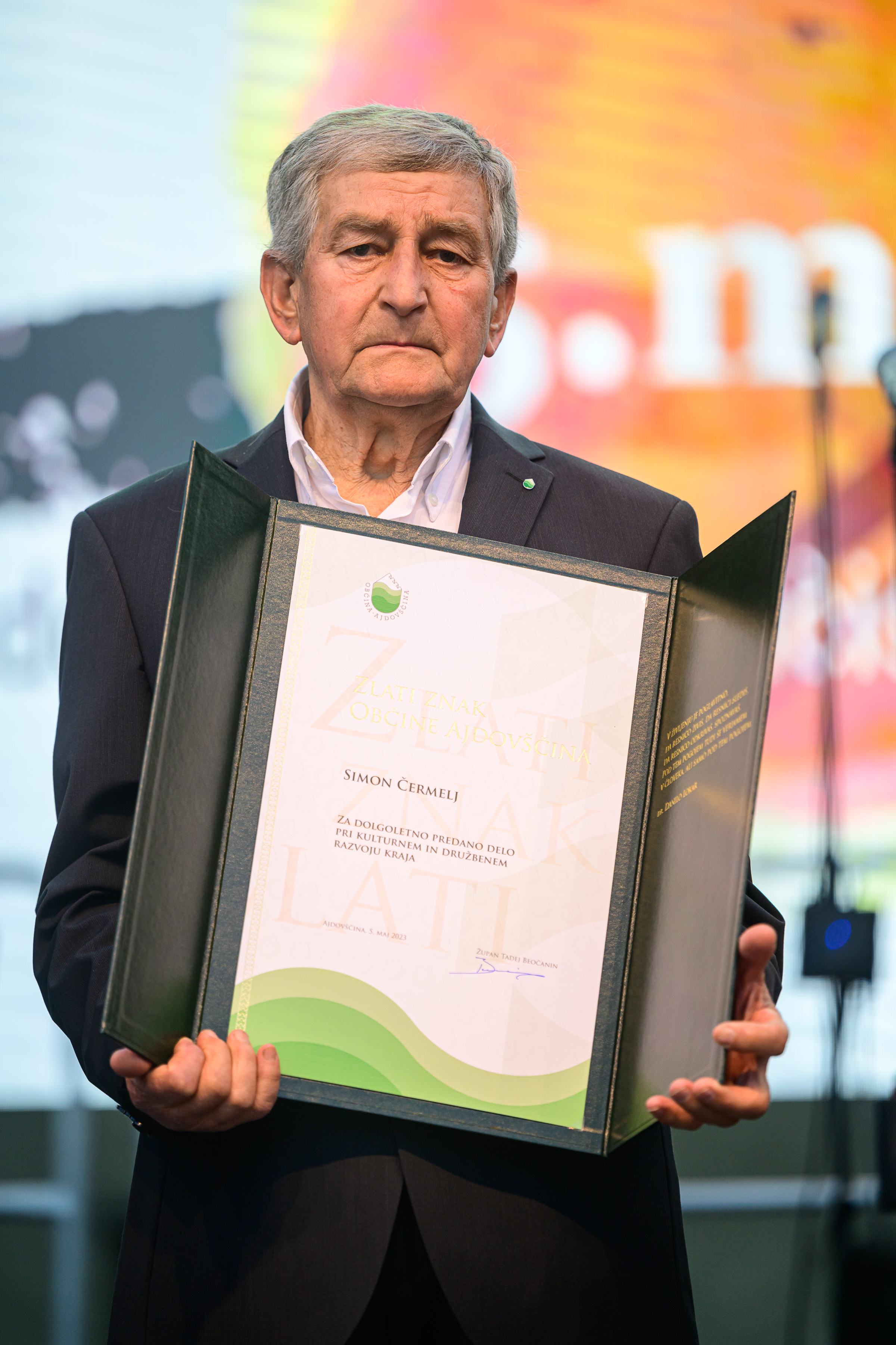 Simon Črmelj, prejemnik Zlatega znaka Občine Ajdovščina za dolgoletno predano delo pri kulturnem in družbenem razvoju kraja