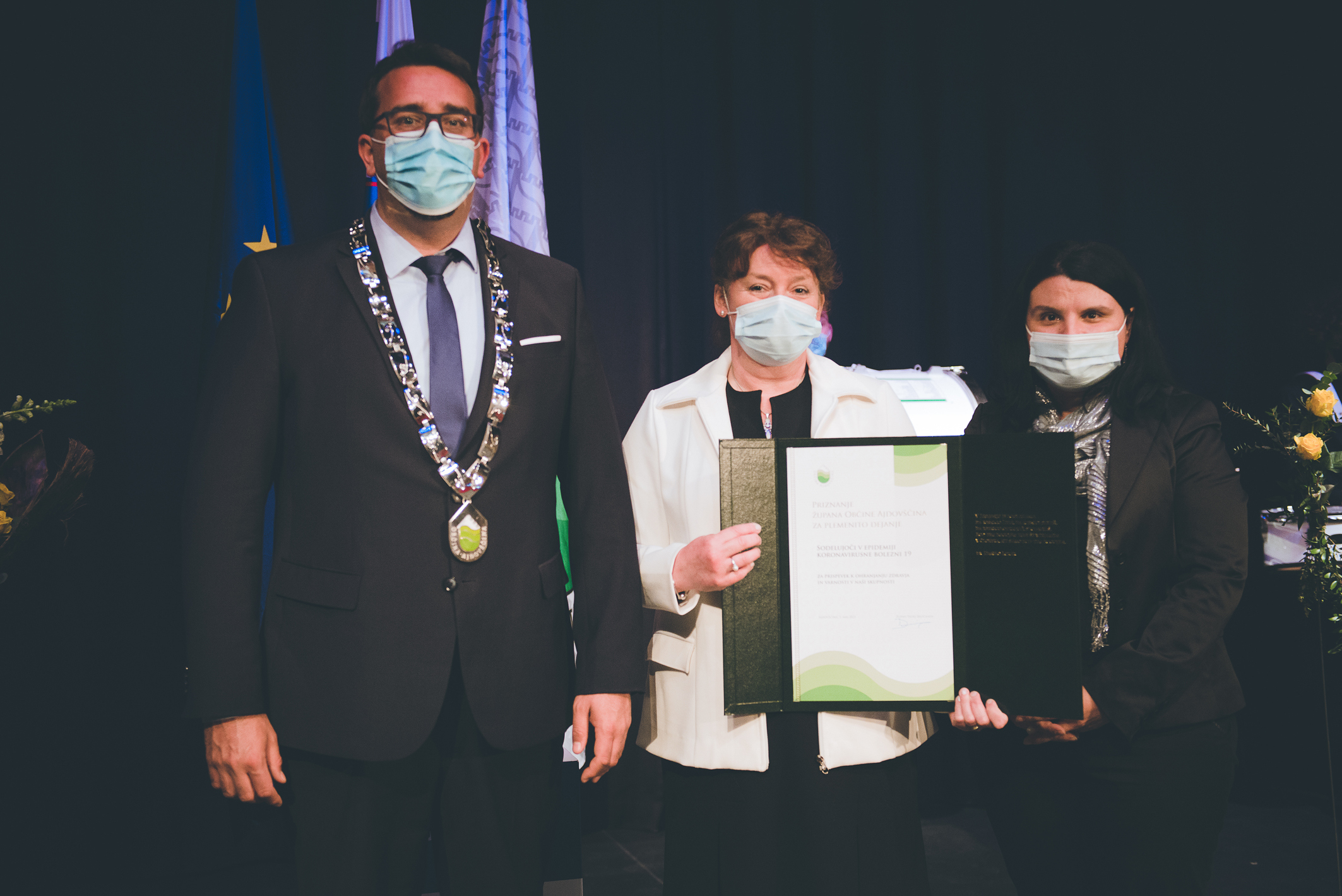 Sodelujoči v epidemiji koronavirusne bolezni 19, prejemniki Priznanja župana Občine Ajdovščina za plemenito dejanje za prispevek k ohranjanju zdravja in varnosti v naši skupnosti.