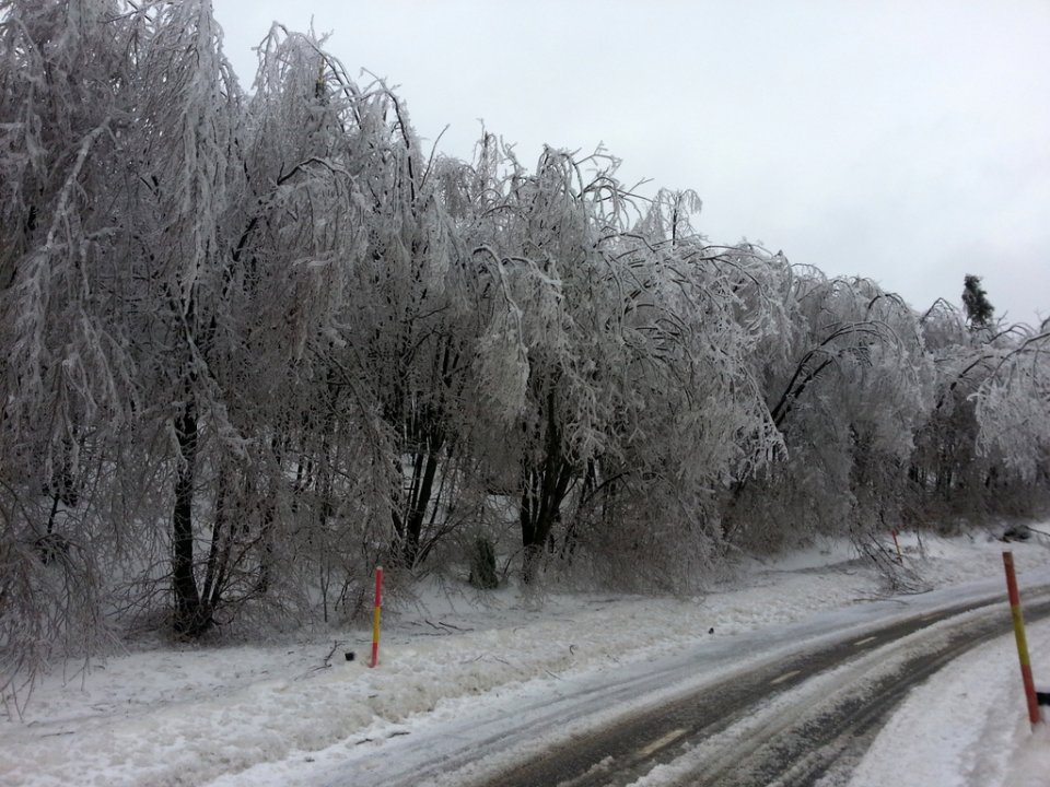 Pravzaprav jo je tokrat predmejski del Gore dobro odnesel, saj ozračje ogreva jugo, ki topi sneg in led. Prav tako so razmere obvladljive na Colu. Na drugi strani Sinjega vrha, ki ustavlja topel veter, pa se že kažejo razmere, podobne tistim iz drugih predelov Slovenije. V ledeni žled ovita drevesa se lomijo, motena je oskrba z elektriko. Vendar pa razmere niso kritične, ceste so prevozne, na terenu so tako delavci elektro podjetja, kot tudi cestnega podjetja. Le-ti zagotavljajo, da bo jutri dostop do šol na Gori nemoten, trenutno čistijo žled z dreves ob glavnih prometnih poteh, tako da se v prometu ne pričakuje večjih težav. Za promet sta zaprti le dve občinski cesti: Podkraj – Bela in Podkraj – Bukovje (proti Postojni).