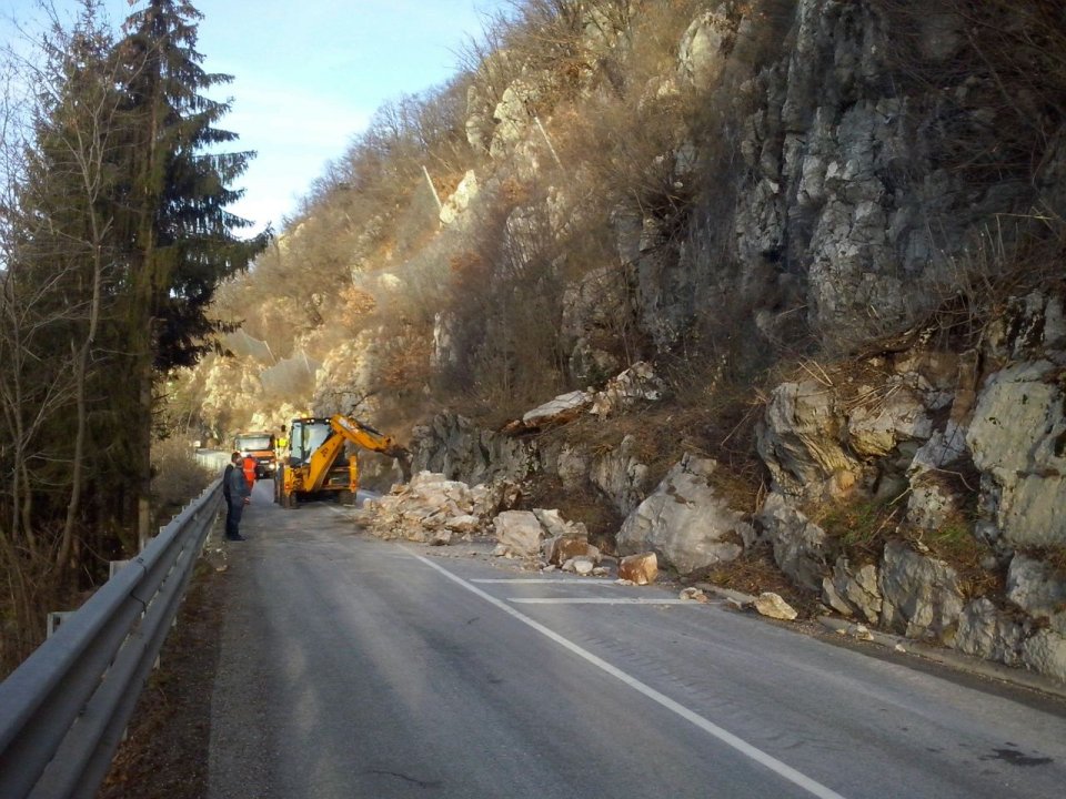 Po včerajšnjem zdrsu kamenja in skal na cesto od Cola proti Višnjam in Podkraju danes Cestno podjetje Gorica vzpostavlja varno povezavo. Predvidoma bo cesta prevozna do večera.