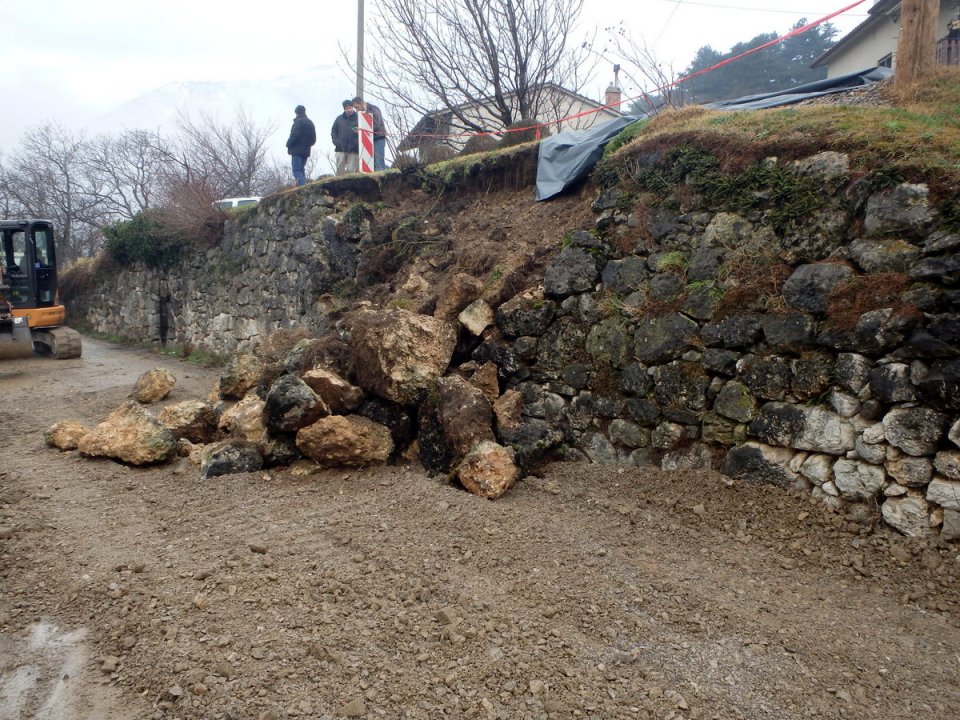 Cesta skozi Gorenje v Lokavcu je do nadaljnjega zaprta. Danes zgodaj popoldan se je namreč zaradi zemeljskega usada zrušil del starega kamnitega zidu.