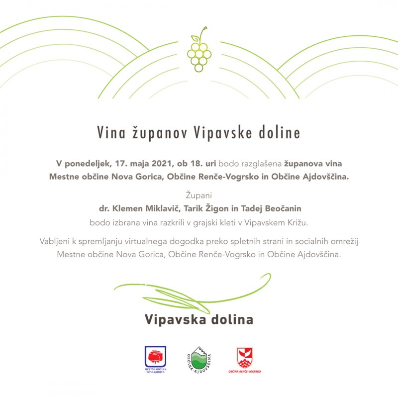 Dogodek: Vina županov Vipavske dolineDatum: 17.05.2021